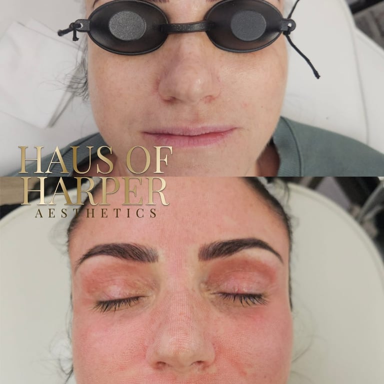 A longer downtime with this treatment. Initial healing where all the redness and scabs appear can take roughly 7days on the average person to completely heal.